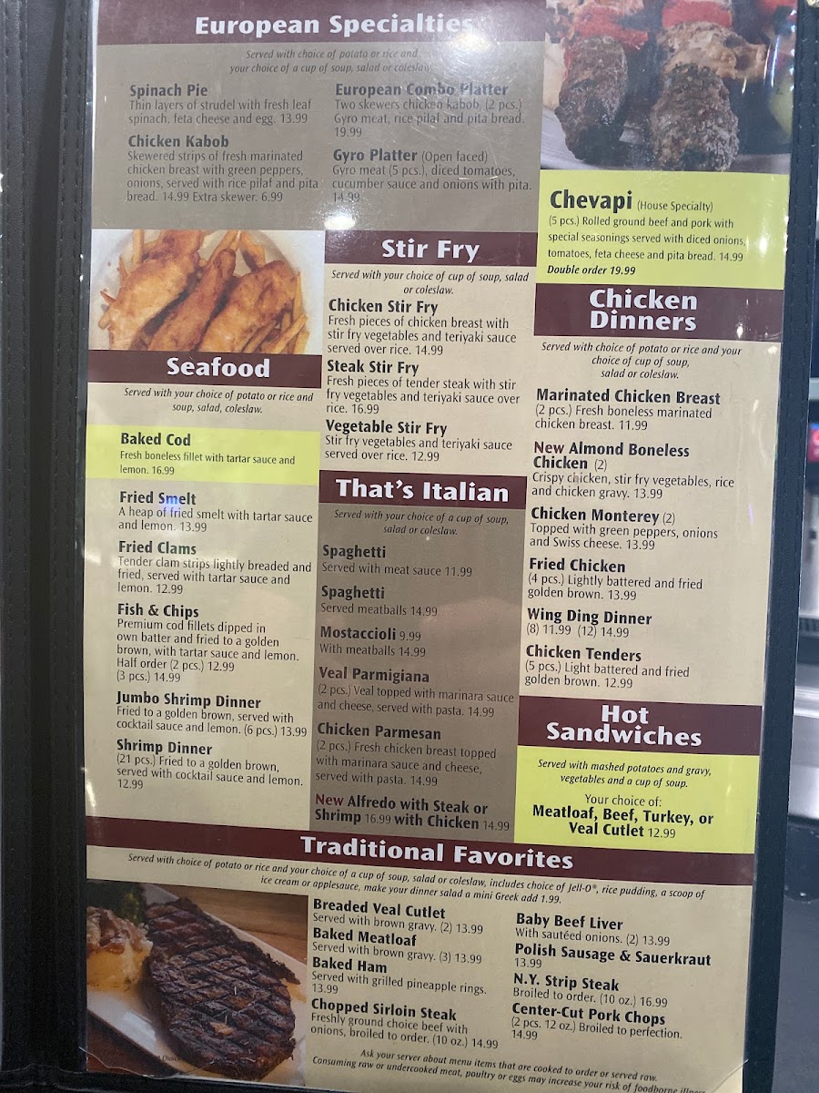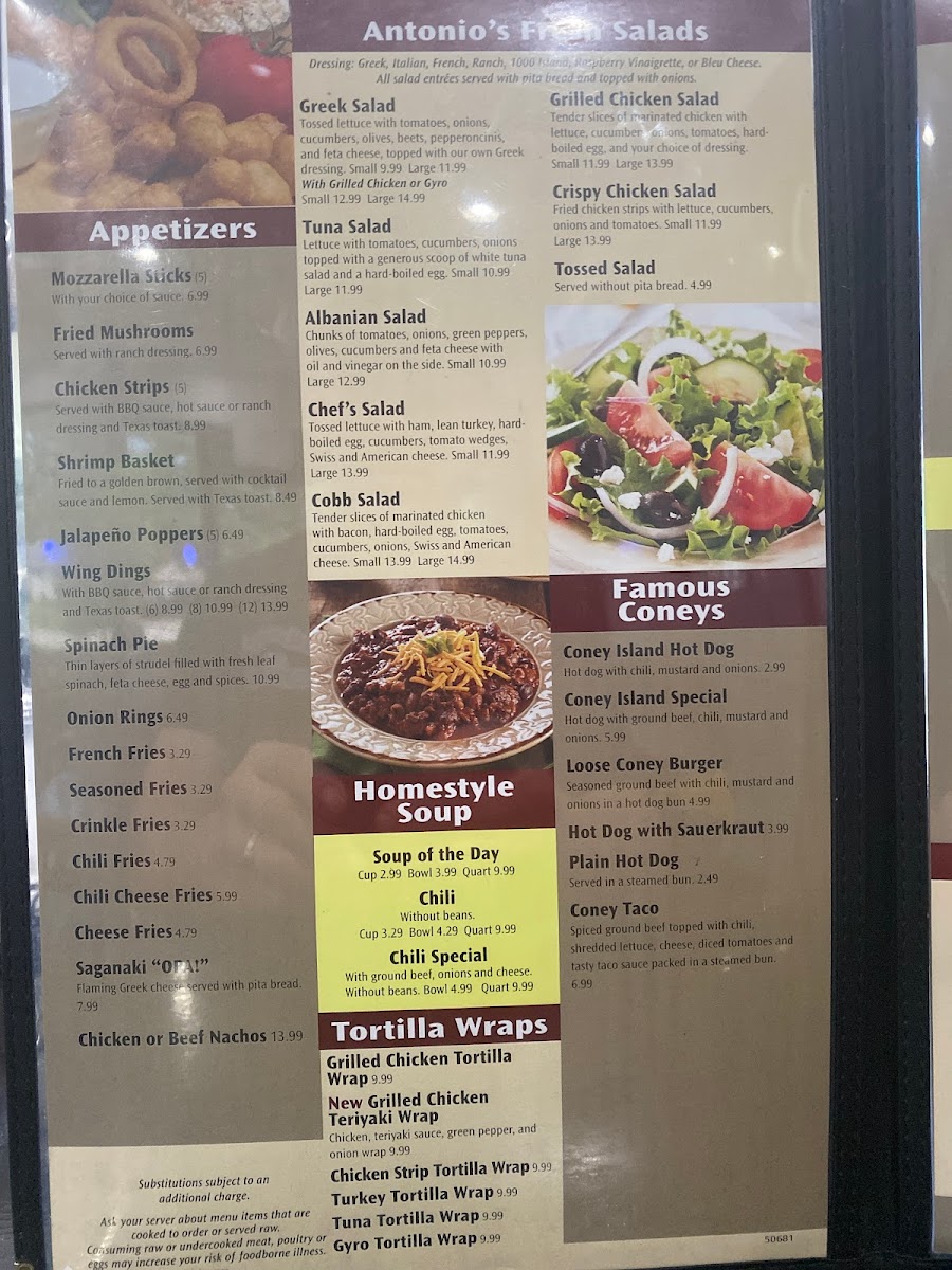 Tossed lettuce with tomatoes, onions, cucumbers, olives, beets, pepperoncinis, and feta cheese, topped with our own greek dressing. Consuming raw or undercooked meat, poultry or eggs may increase your risk of foodborne illness.
