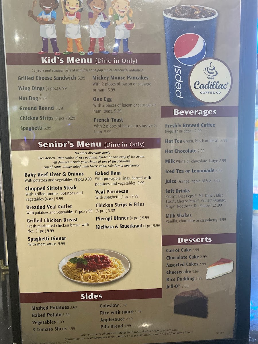 Two extra large eggs, your choice of ham, bacon, or sausage, hash browns, grits, OR tomato slices and toast and jelly.